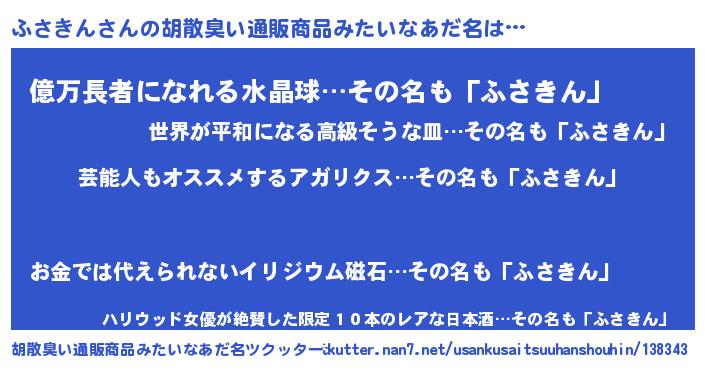 | ヘコむあだ名 | 『ふさもー』『酢こんぶ』『ふさ太郎』 |