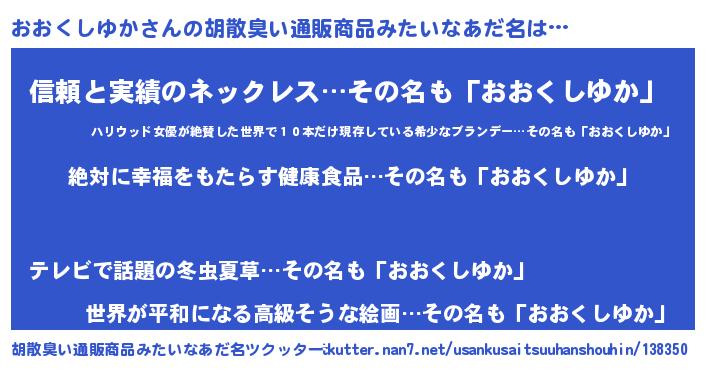 | ヘコむあだ名 | 『おおくしゆか(爆)』『おお太郎』 |
