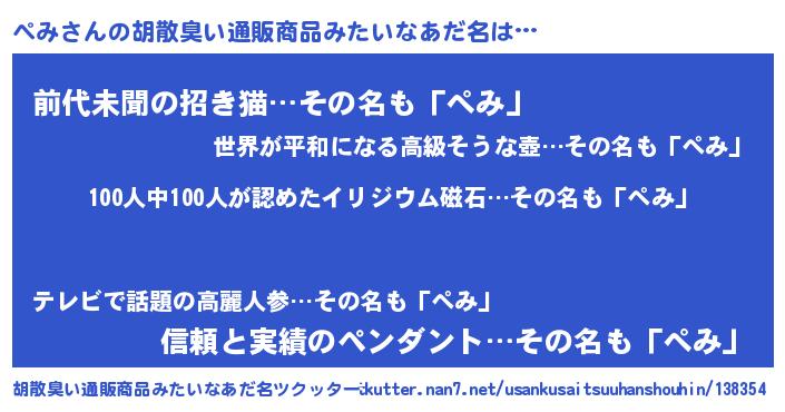 | ヘコむあだ名 | 『ぺみ(苦笑)』『ぺみっぺ』 |