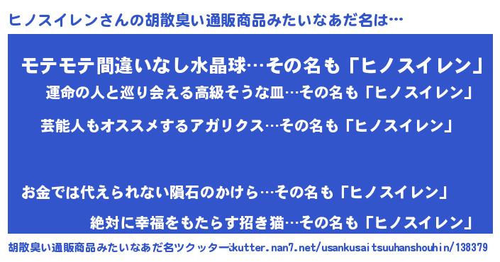 | 意味不明あだ名 | 『自称ヒノスイレン』 |