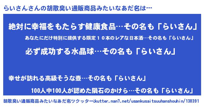 | ヘコむあだ名 | 『らいにゅー』『らいさん(爆)』 |