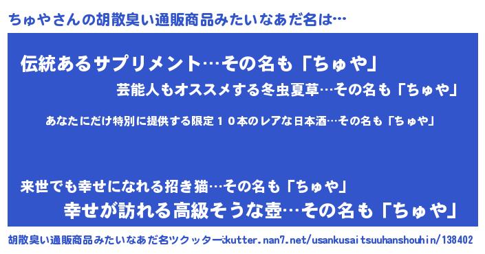 | ヘコむあだ名 | 『ちゅっ子』『豆乳』『ちゅや(笑)』 |