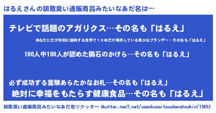 | ヘコむあだ名 | 『はるえ(遠い目)』『はるふぇ~』 |