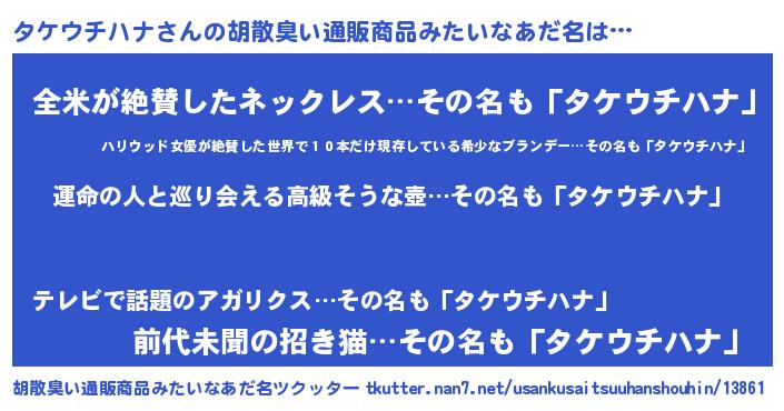 | 意味不明あだ名 | 『タケウチハナフォーエバー』 |