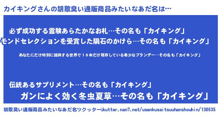 | 男性向けラノベタイトル風あだ名 | 『この素晴らしい世界にカイキングを!』 |