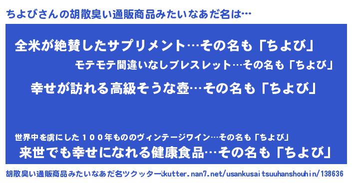 | 意味不明あだ名 | 『めかぶ科ちよび属』『永久保存ちよび』 |