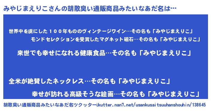 | 意味不明あだ名 | 『永久保存みやじまえりこ』 |