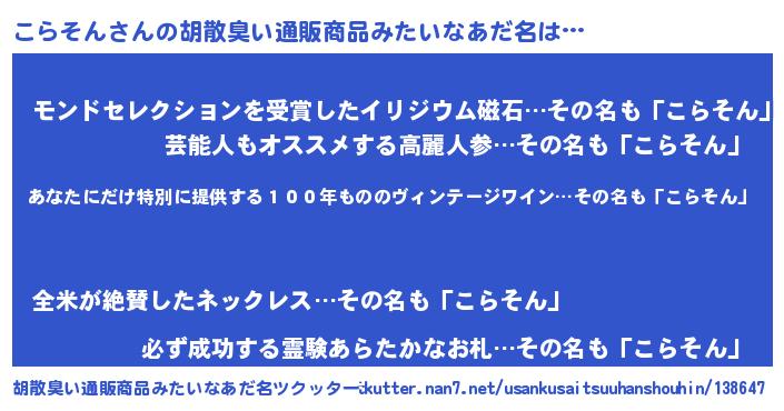 | ヒーロー風カッコイイあだ名 | 『仮面コラダー』『慈愛の使者こらそん』 |