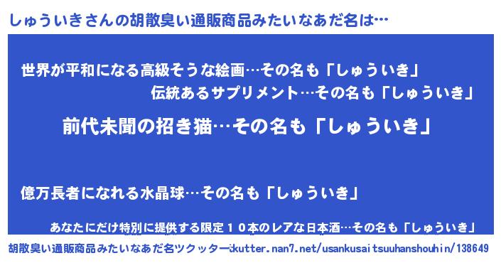 | ヒーロー風カッコイイあだ名 | 『ネオシュウイキ』『仮面シュダー』 |