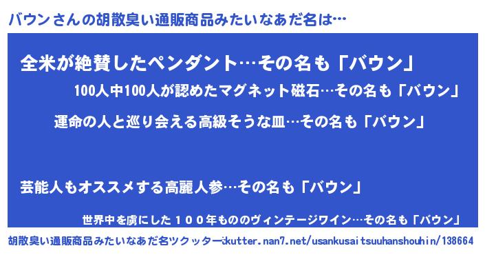 | 女子向けラノベタイトル風あだ名 | 『バウンの婚約者』『バウン様がみてる』 |