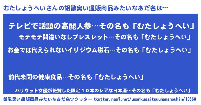 | ヘコむあだ名 | 『むたにゅー』『むたしょうへい(小並感)』 |