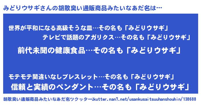 | ヘコむあだ名 | 『みどりウサギ(苦笑)』『なまこ酢』 |