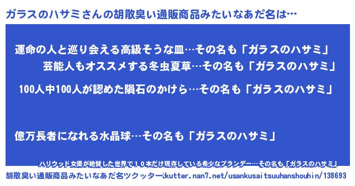 | 欧米人風あだ名 | 『アンジェラ・ガラスのハサミ』 |