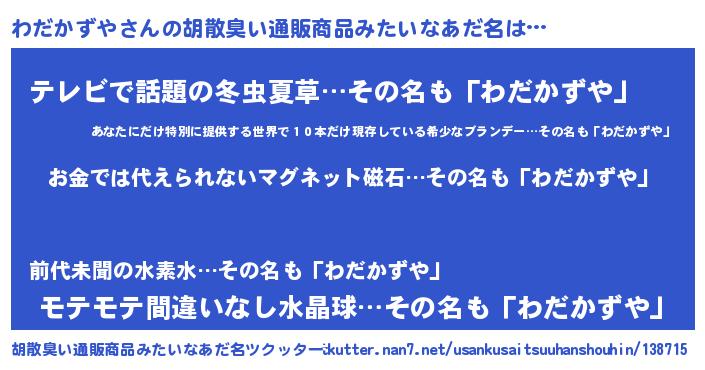 | 意味不明あだ名 | 『眠気覚ましガムわだかずや味』 |