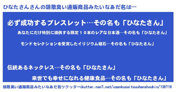 | ヘコむあだ名 | 『ひなにゅー』『ひなたさん(小並感)』 |