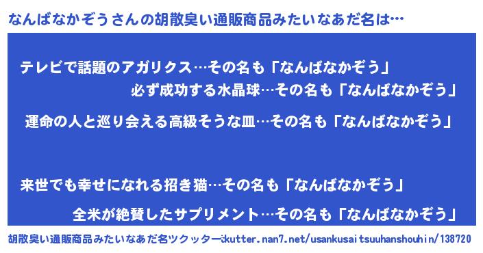 | 意味不明あだ名 | 『なんばなかぞうフォーエバー』 |