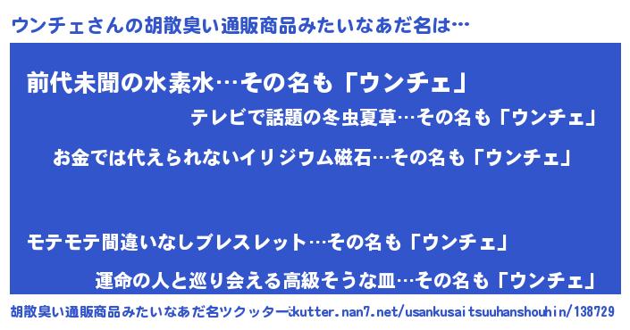 | ヒーロー風カッコイイあだ名 | 『慈愛の使者ウンチェ』『ネオウンチェ』 |