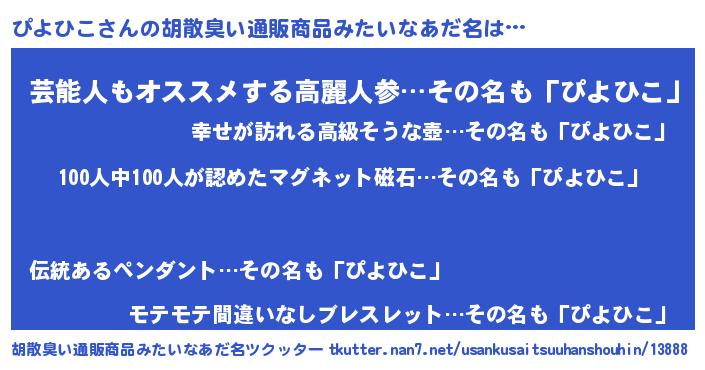 | ヘコむあだ名 | 『ぴよふぇ~』『酢こんぶ』『ぴよお』 |