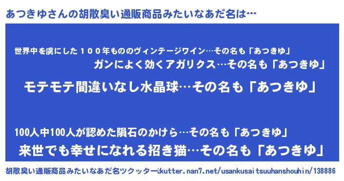 | ヘコむあだ名 | 『あつにゅー』『あつきゆ(笑)』 |