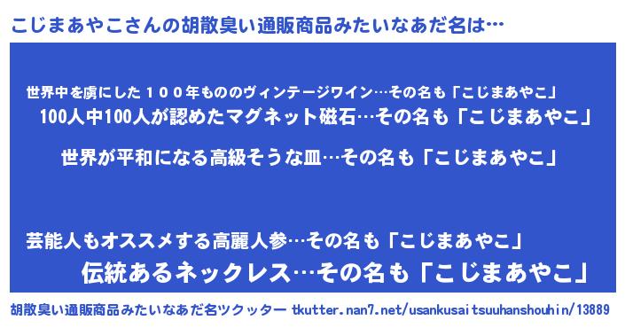 | ヘコむあだ名 | 『なまこ酢』『こじお』『こじふぇ~』 |