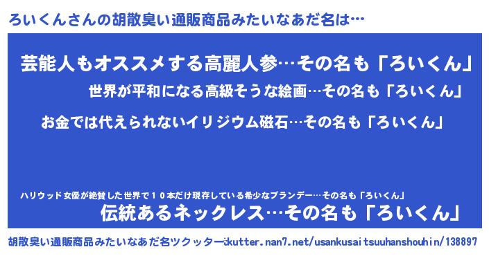 | 欧米人風あだ名 | 『ダニエルろいくん』『ウサインろいくん』 |