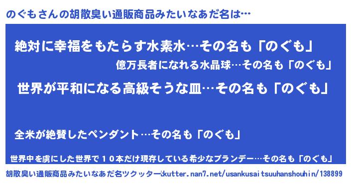 | 意味不明あだ名 | 『のぐもフォーエバー』『永久保存のぐも』 |