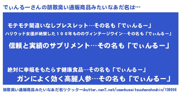 | 男性向けラノベタイトル風あだ名 | 『ダンジョンにでぃんるーを求めるのは間違っているだろうか』 |