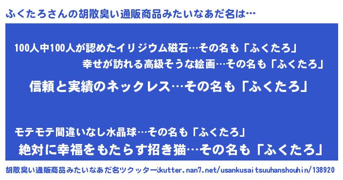 | ヒーロー風カッコイイあだ名 | 『黄金騎士フク』『正義の使者ふくたろ』 |