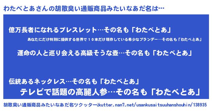 | 意味不明あだ名 | 『わたべとあフォーエバー』 |