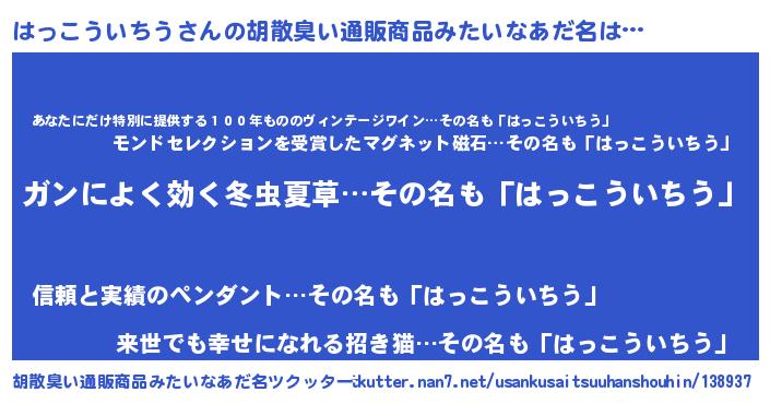 | 意味不明あだ名 | 『自称はっこういちう』 |