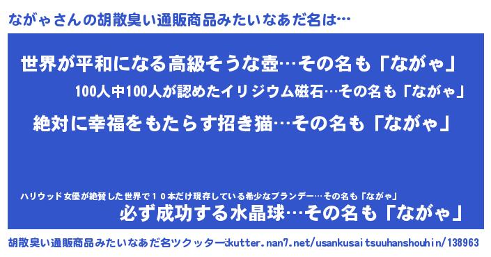 | 意味不明あだ名 | 『永久保存ながゃ』『ながゃフォーエバー』 |