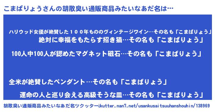 | 意味不明あだ名 | 『眠気覚ましガムこまばりょう味』 |