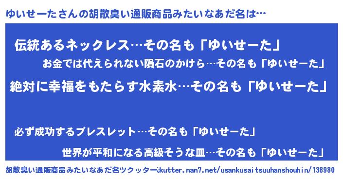 | 意味不明あだ名 | 『永久保存ゆいせーた』 |