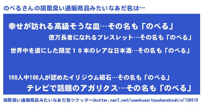 | 男性向けラノベタイトル風あだ名 | 『この素晴らしい世界にのべるを!』 |