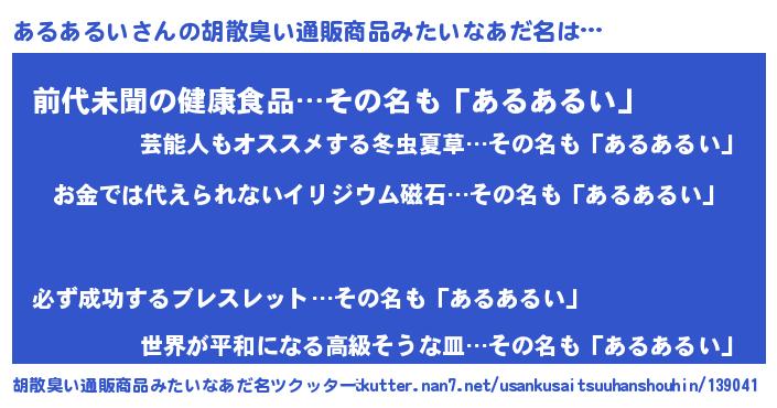| 男性向けラノベタイトル風あだ名 | 『転生したらあるあるいだった件』 |