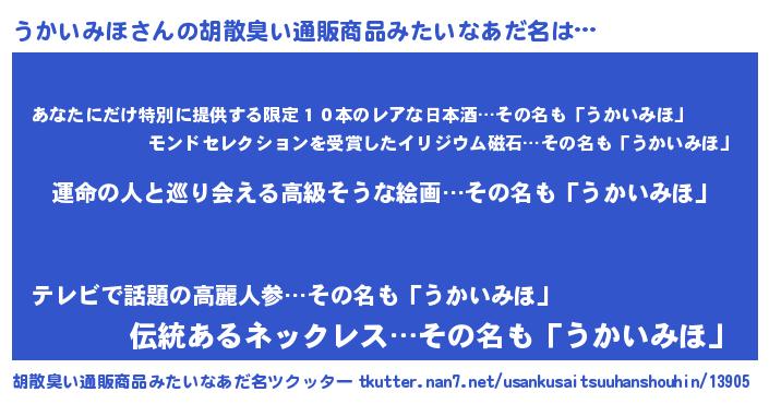 | 意味不明あだ名 | 『うかいみほフォーエバー』 |