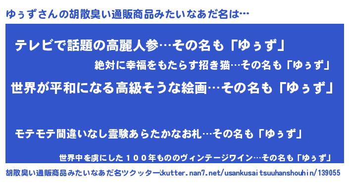 | ヘコむあだ名 | 『豆乳』『ゆぅず(笑)』『ゆぅにー』 |