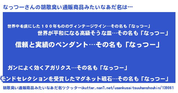 | 意味不明あだ名 | 『とにかく怪しいなっつー』 |