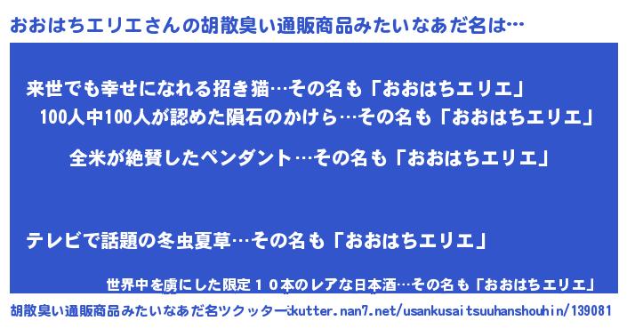 | 意味不明あだ名 | 『とにかく怪しいおおはちエリエ』 |