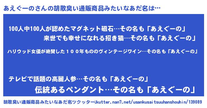 | ヒーロー風カッコイイあだ名 | 『仮面アエダー』『正義の使者あえぐーの』 |