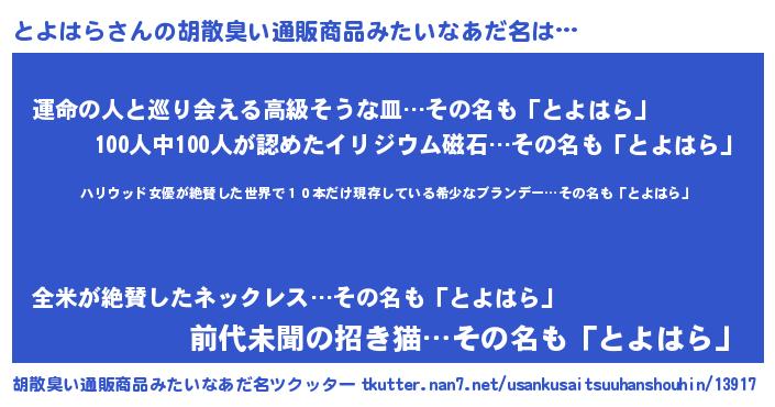 | 意味不明あだ名 | 『住所不定無職とよはら(79歳)』 |