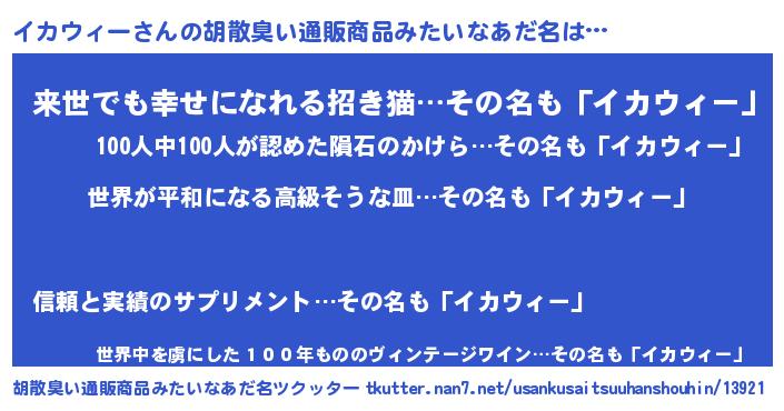 | 意味不明あだ名 | 『イカウィーフォーエバー』 |