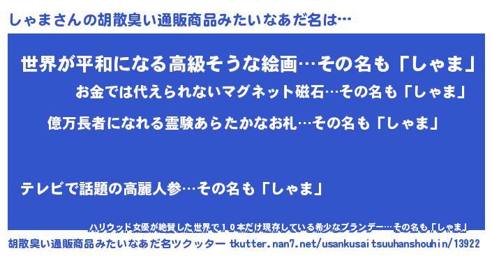 | ヒーロー風カッコイイあだ名 | 『スーパーシャマ』『ウルトラしゃまマン』 |