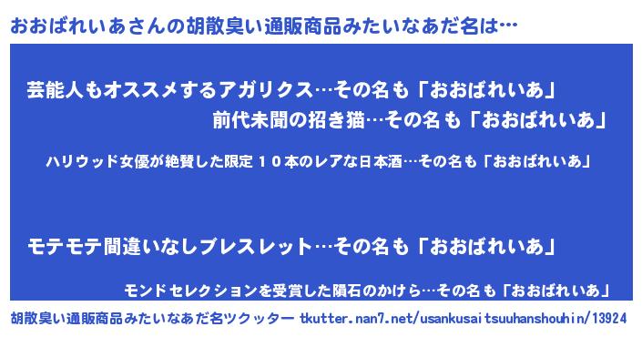 | 意味不明あだ名 | 『住所不定無職おおばれいあ(68歳)』 |