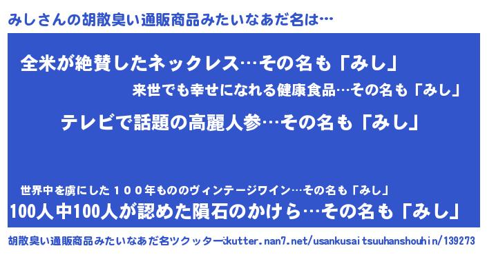 | 意味不明あだ名 | 『自称みし』『とにかく怪しいみし』 |