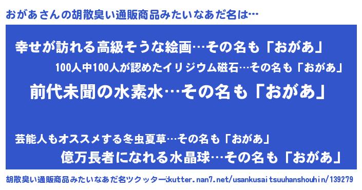| 意味不明あだ名 | 『永久保存おがあ』『おがあフォーエバー』 |