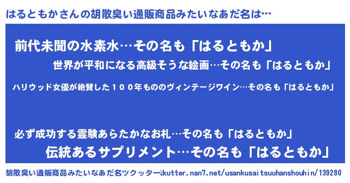 | ヘコむあだ名 | 『はるともか(笑)』『はるぷりん』 |