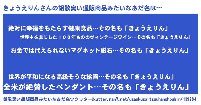 | 意味不明あだ名 | 『眠気覚ましガムきょうえりん味』 |