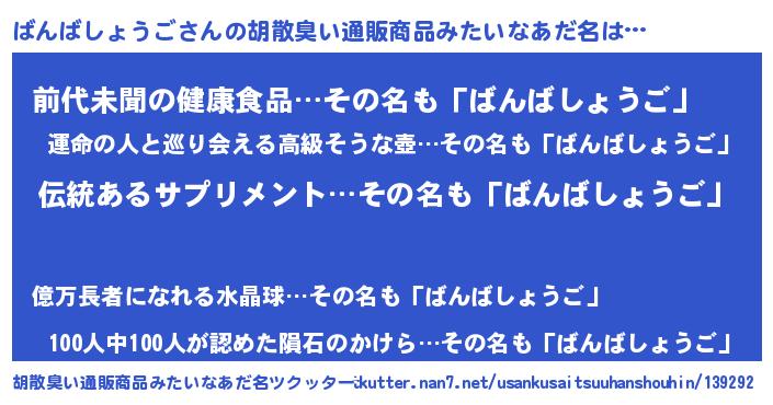 ポケモン風あだ名 | 『ヒバンバショウゴ』『ゼニバン』 |