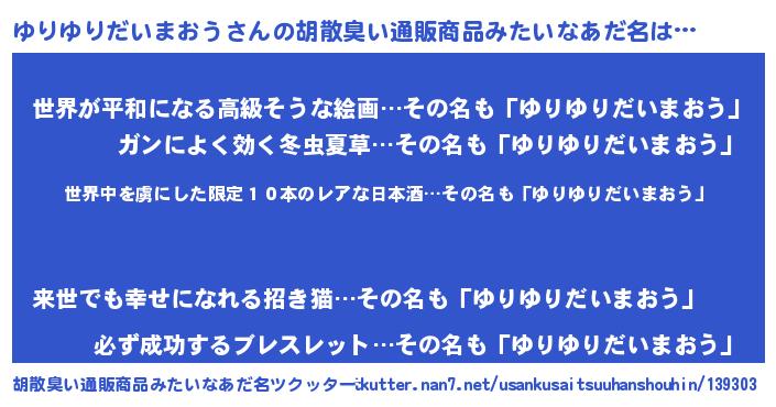 | 意味不明あだ名 | 『住所不定無職ゆりゆりだいまおう(68歳)』 |